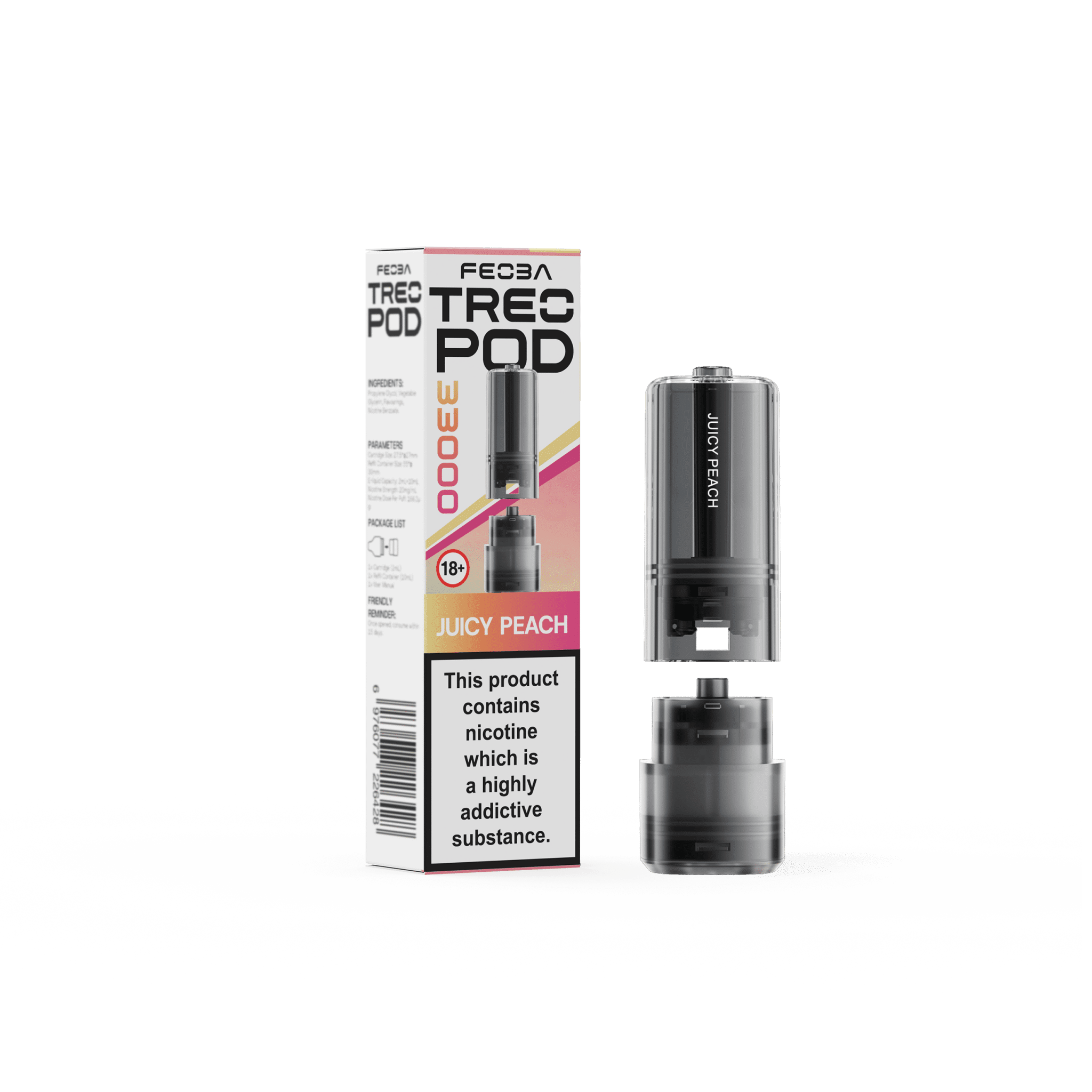 The Feoba Treo 33K Replacement Pods are designed to seamlessly integrate with the Feoba Treo 33K Prefilled Pod Vape Kit, offering a premium and eco-friendly vaping experience. Each replacement unit offers a total of 12 ml of 20 mg nicotine salt e-liquid, comprised of a 2 ml prefilled pod and a 10 ml refill tank, delivering up to an astonishing 33,000 puffs per pair of pods—one of the highest puff counts in its class