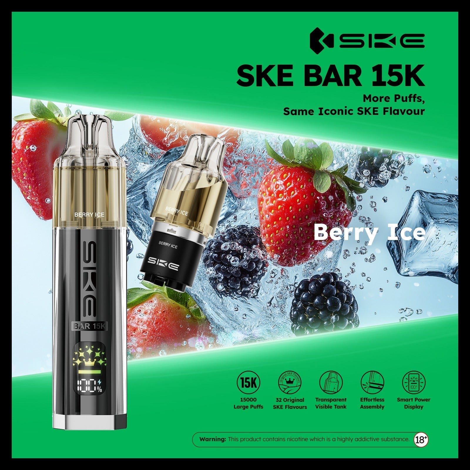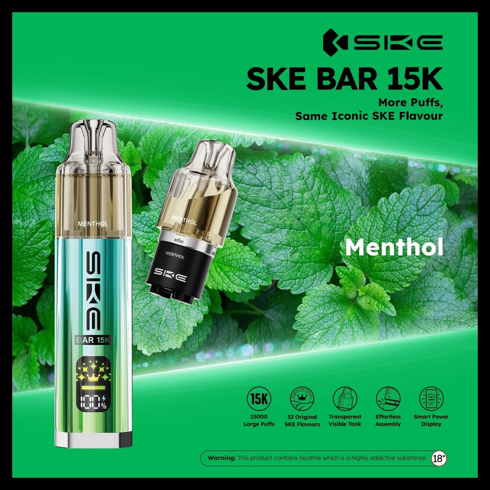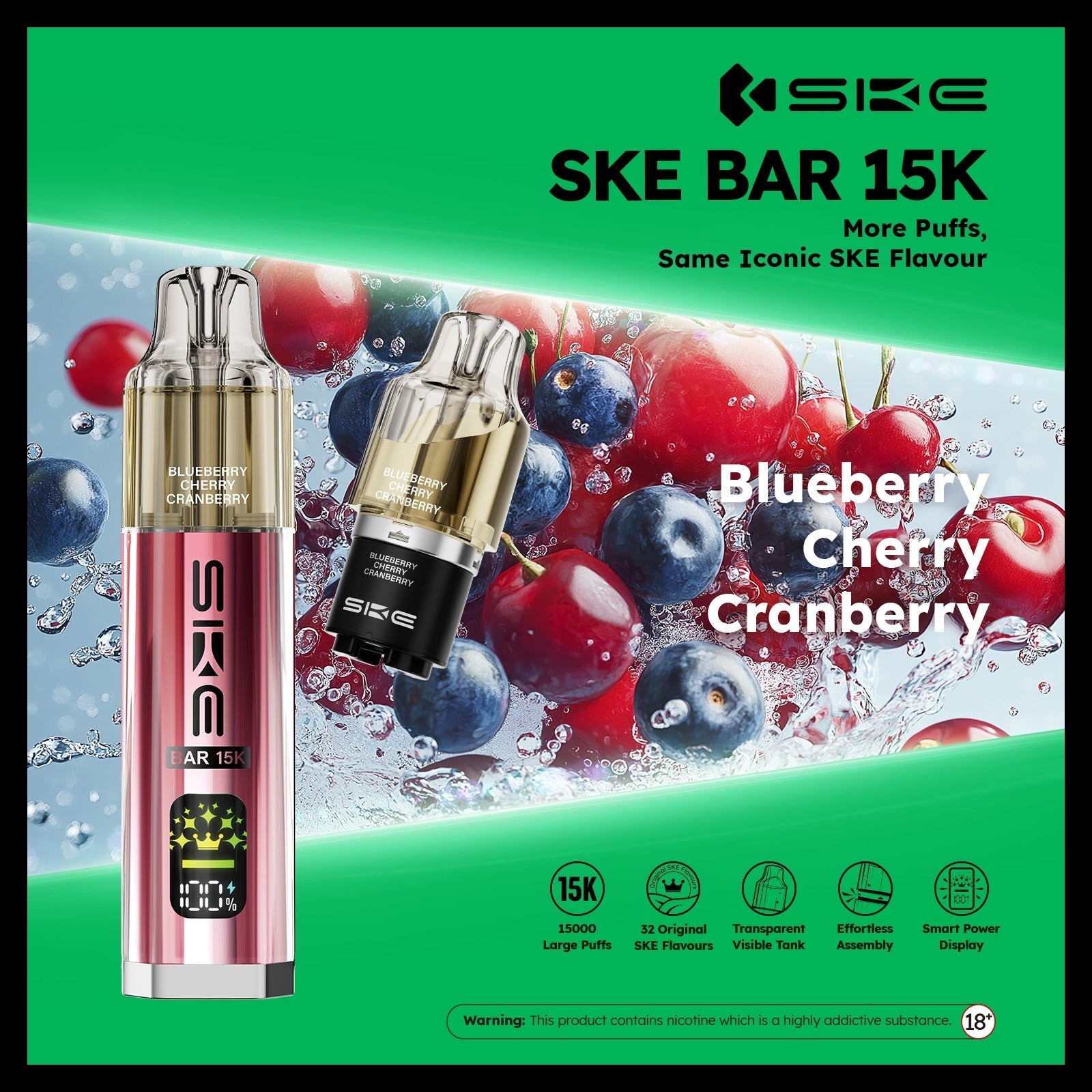 Supplied as a pack of 5, the Ske Bar 15K is ideal for regular users, bulk buyers, and retailers looking for a reliable, high-quality pod vape kit.