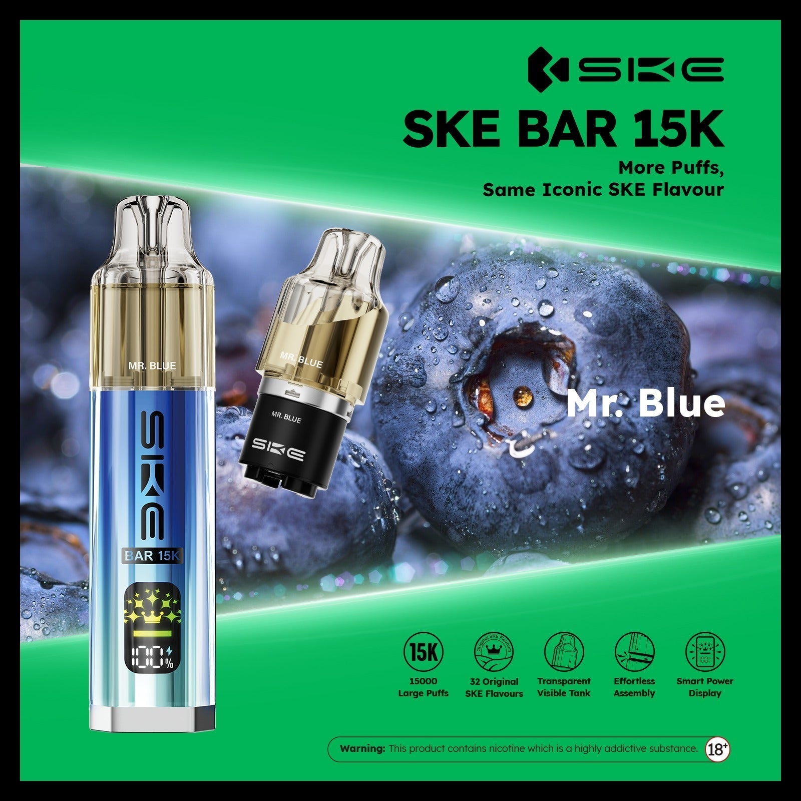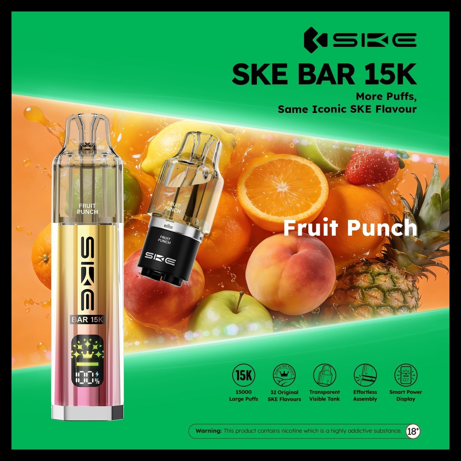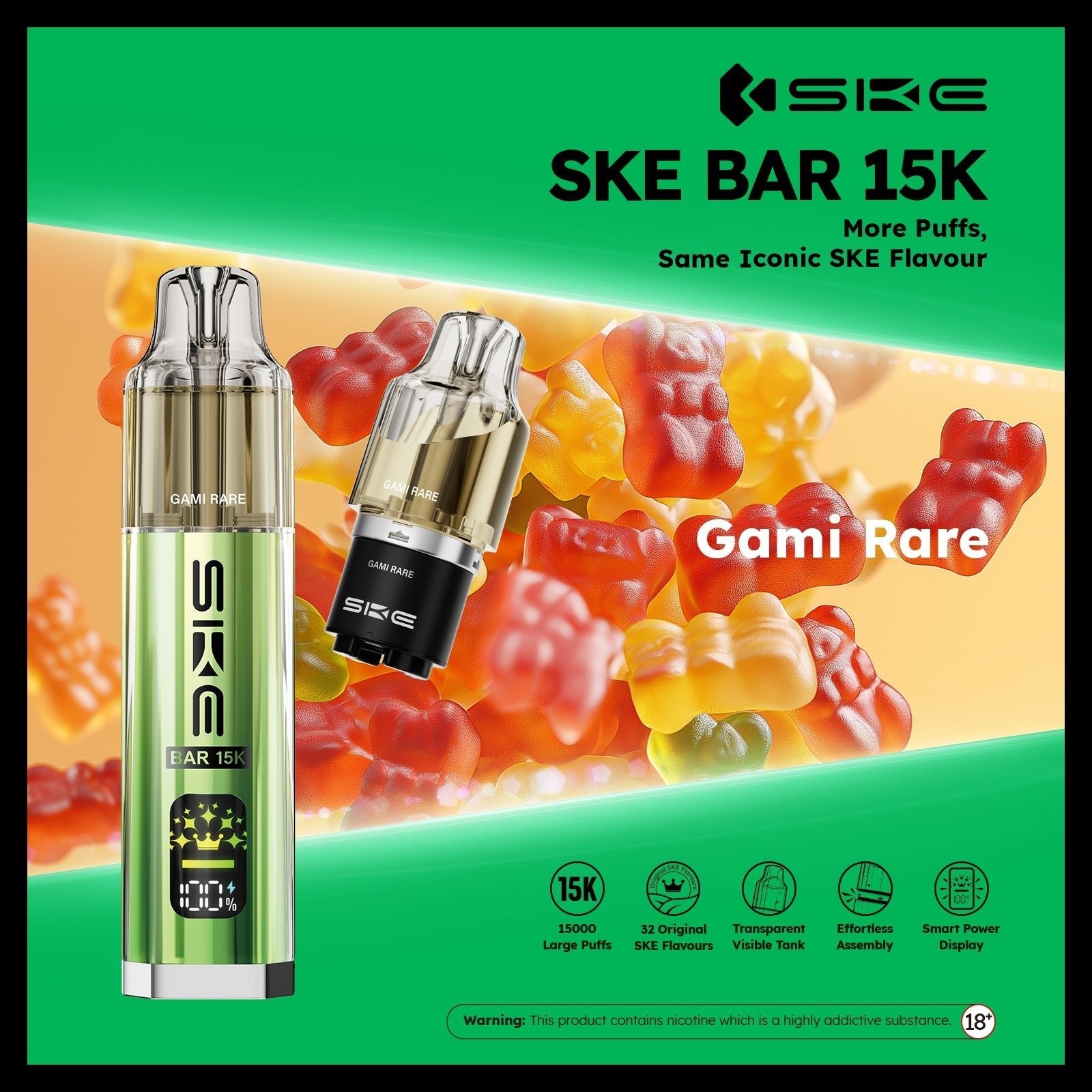 Supplied as a pack of 5, the Ske Bar 15K is ideal for regular users, bulk buyers, and retailers looking for a reliable, high-quality pod vape kit.